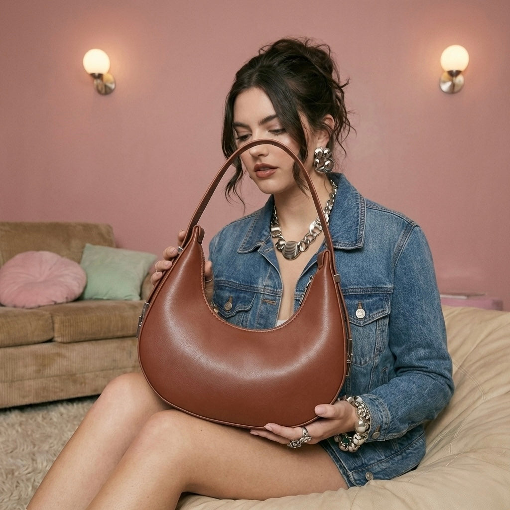 ارتقِ بمظهرك الأنيق مع حقيبة الكتف Arcadia Crescent! مصنوعة من جلد صناعي، وحجرتها الرئيسية مؤمنة بقفل بسحاب للحفاظ على أغراضك آمنة. تأتي هذه الحقيبة مع حزام كتف قابل للتعديل والتمدد وأربعة ألوان أنيقة للاختيار من بينها، وهي مثالية للارتداء اليومي أو المناسبات الخاصة!