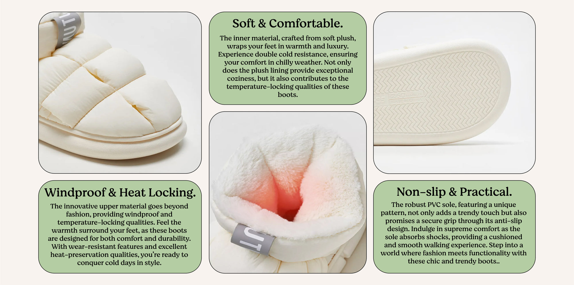 Mit unseren High Top Thermostiefeln sind Sie warm und stilvoll! Dank des winddichten und temperaturregulierenden Obermaterials können Sie der Kälte getrost trotzen! Das weiche Innenmaterial aus Plüsch hält Ihre Füße kuschelig warm, während die dicke, rutschfeste PVC-Sohle für Stabilität sorgt. Erhältlich in vier trendigen Farben!