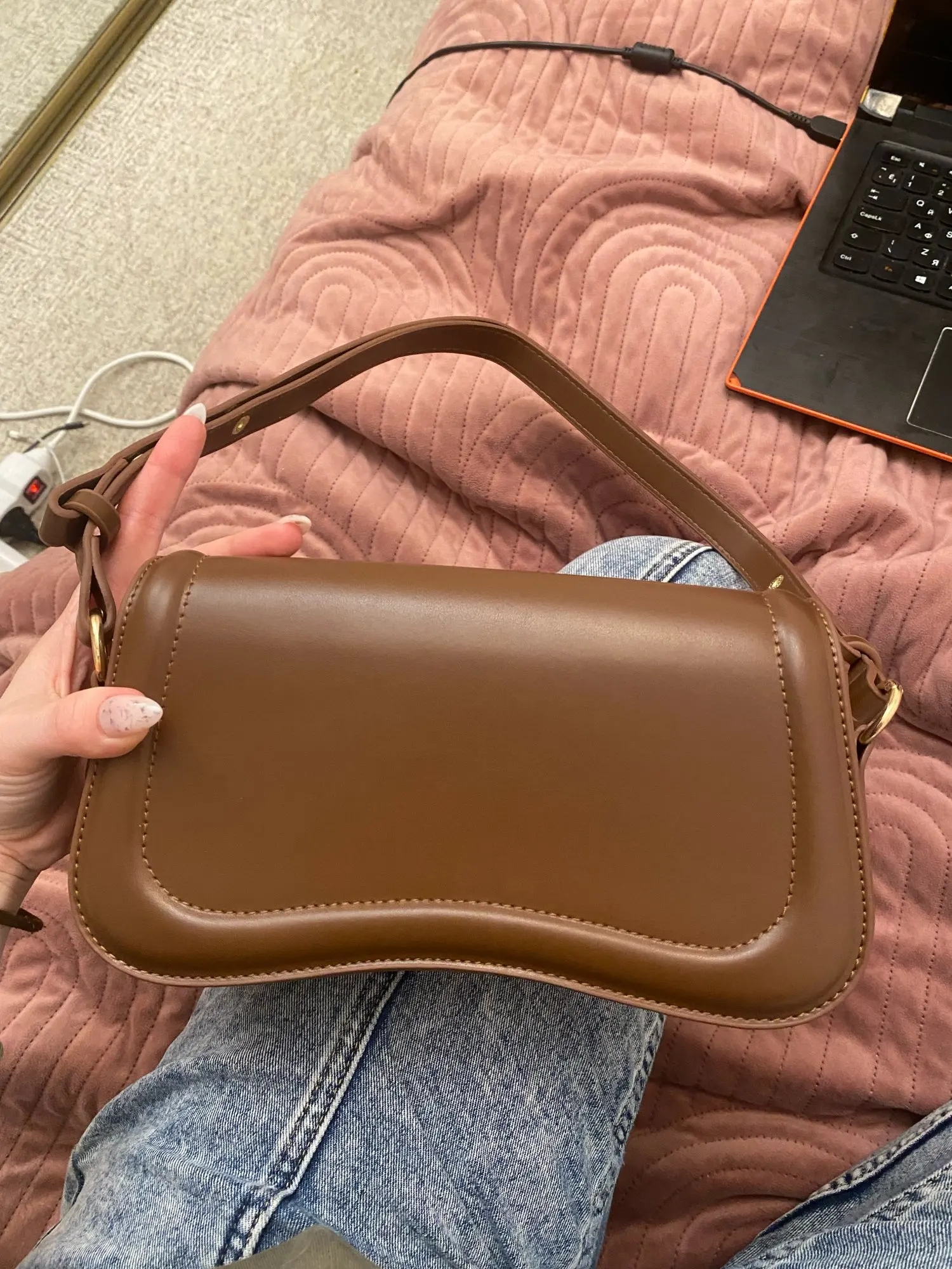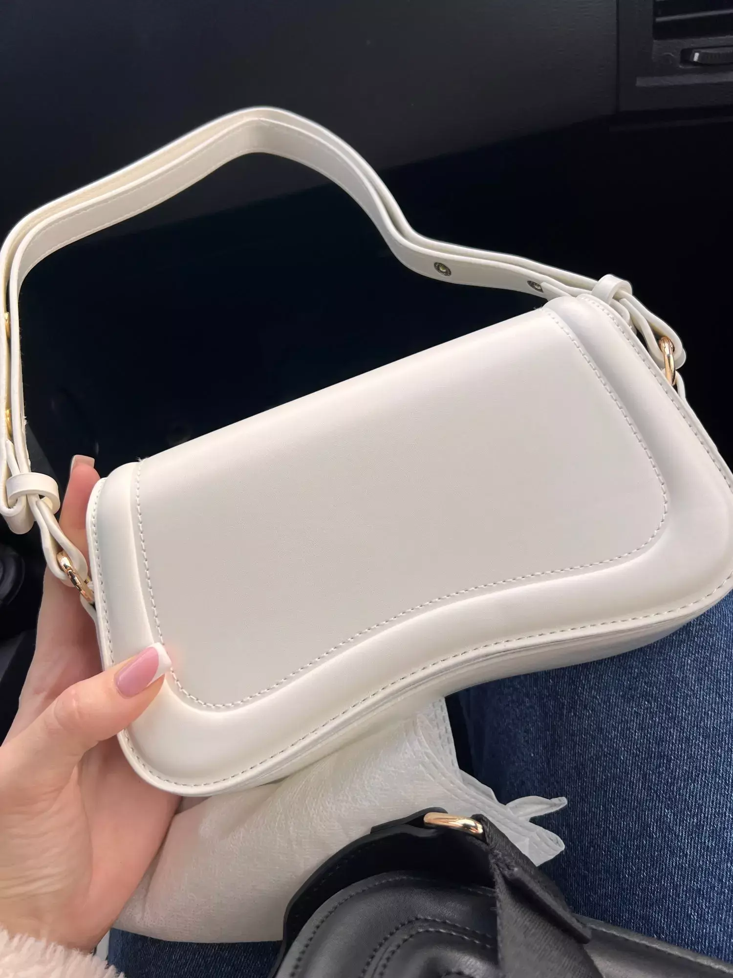 Introducing the Whimsy Curve Shoulder Bag! Let your playful side shine with this charming and imaginative accessory. Made of sturdy vegan leather, it boasts a magnetic snap lock main compartment for safekeeping. The eye-catching curved design adds a playful touch, making it a one-of-a-kind addition to your wardrobe. Choose from five beautiful shades, effortlessly pairing it with any outfit. The adjustable belt shoulder strap adds versatility for everyday wear. Make a statement with the Whimsy Curve Shoulder Bag!